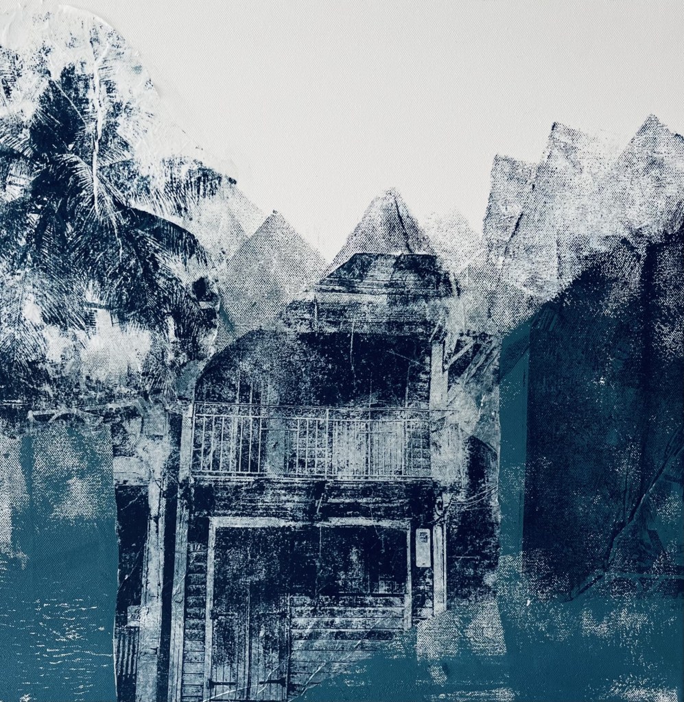 La démarche artistique de Ilona Maier s’appuie sur des photographies en noir et blanc qu’elle transpose avec minutie, sans recourir à l’usage d’acides ni de solvants, sur des toiles, des cartons, et des matériaux recyclés. Elle façonne ainsi des compositions riches en tension, faisant appel à diverses techniques d’impression pour donner vie à ses créations